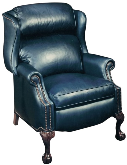 The Presidential reclining wing chair with brass nails is offered in hundreds of leather options and includes a standard nailhead trim #9 in French natural finish. Other decorative nailhead finishes are available. Comes with a standard mahogany finish but other finishes are available.Read More