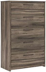 Casually cool style and lots of storage go hand in hand with this chest of drawers. A weathered brown finish over replicated oak grain creates an easygoing vibe, setting the scene in your restful retreat. Clean lines and modern handles provide a fuss-free look.Read More